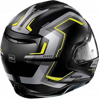 Die konsolidierten technischen Merkmale, die den N100-5 zu einem von den anspruchsvollsten Motorradtouristen sehr geschätzten Produkt machen, sind alle vorhanden: kompakte Größe (dank der Verfügbarkeit von zwei Außenschalengrößen), doppelte P/J-Homologation, ultraweites Visier, VPS-Sonnenschutz (in verschiedenen Positionen einstellbar und mit automatischem Aufrollsystem ausgestattet), oberes Belüftungssystem AirBooster Technology, Drehung des Kinnschutzes mit elliptischer Drehung, exklusiver Mechanismus zum Öffnen des Kinnschutzes mit doppelter Betätigung, Doppelhebel-Microlock2-Rückhaltesystem mit mikrometrischer Einstellung, Innenpolsterung Clima Comfort (mit mikroperforierten Stoffen und einstellbarer Nackenrolle) und Einrichtung für das Kommunikationssystem N-Com.