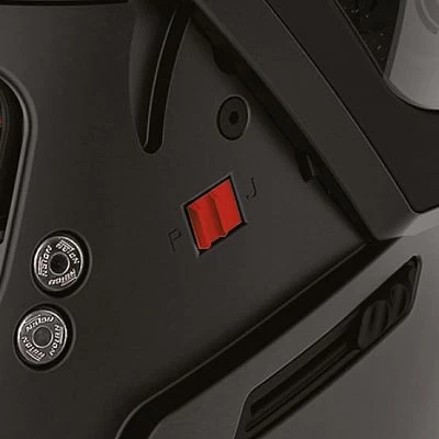 Der Helm kann entweder mit geöffnetem Kinnschutz (Konfiguration J) oder geschlossenem Kinnschutz (Konfiguration P) verwendet werden, da der Kinnschutz die in den UN/ECE-Regelungen für Vollvisierhelme geforderten Homologationsprüfungen bestanden hat.